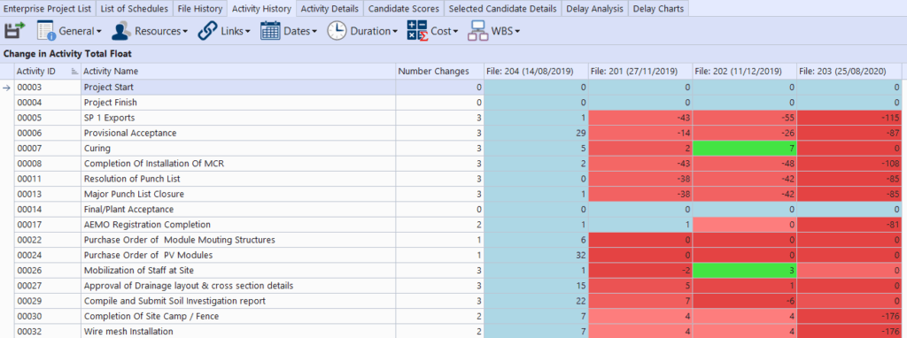 - Track Attribute Changes: Investigate how attributes (e.g., Constraint, Predecessor, Start) have changed throughout the project’s progress.