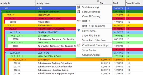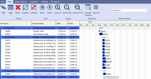 - Group activities by WBS, Date, toggle to Expand or Collapse Group.