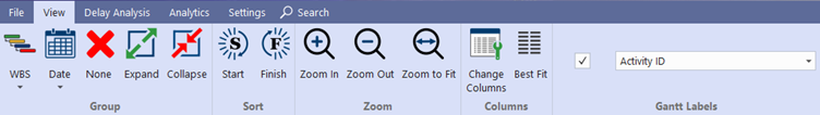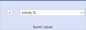 Gantt Labels default to Activity ID > Select the desired option from the Gantt Label dropdown to be displayed on the Gantt.